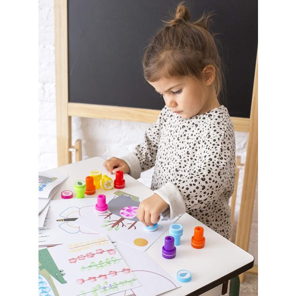 Taip pat šios amžiaus grupės vaikai jau geba tiksliau atlikti vėrimo užduotis ar dėti smulkius pagaliukus/mozaikos dalis į vietas. Tokiems įgūdžiams tinka šis Miniland lavinamasis rinkinys: