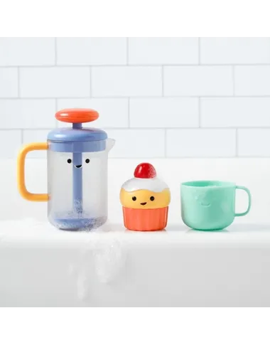 Skip Hop vonios žaislas Arbatėlė. Smagus žaidimas vonioje su ąsotėliu, puoduku ir keksiuku. Puodelio apačioje rasite skylutes, pro kurias galėsite pilti vandenį, o keksiukas susideda iš dviejų dalių ir turi skylutę vandeniui purkšti.